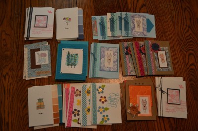 These are the cards I stamped while visiting my college friend and co-stamping nut. I mean hobbyist.