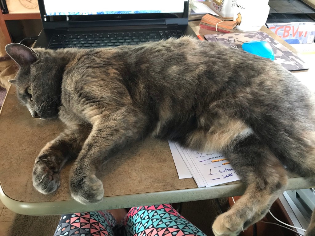 Pip is not moving, and is quite unhappy about sharing the limelight with his cat-mom, Alyson. I think he might be giving her the subliminal brush off, or at least the “talk to my back” posture.