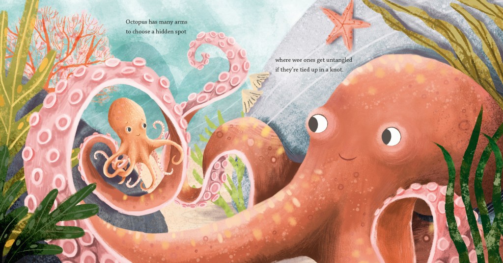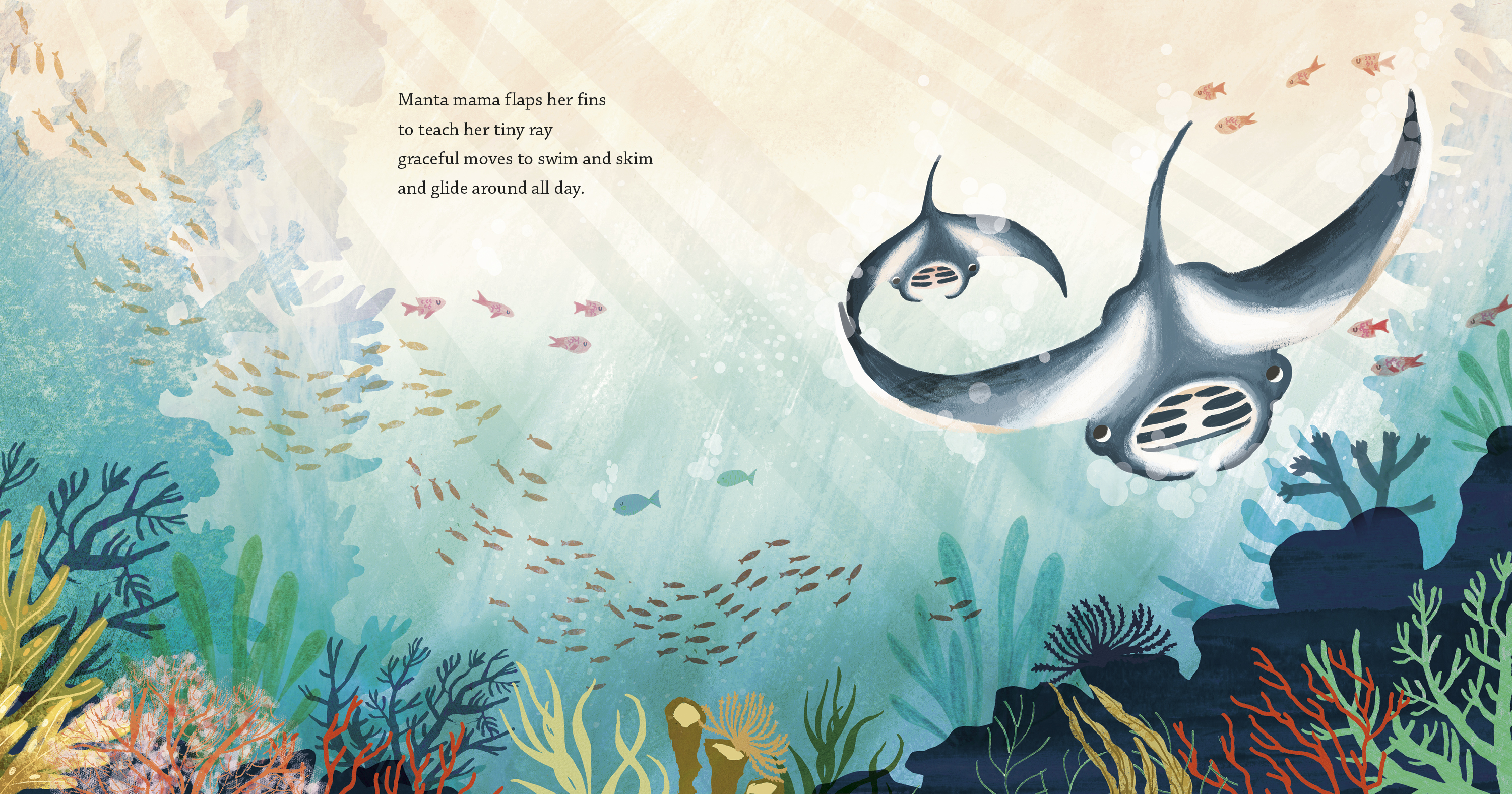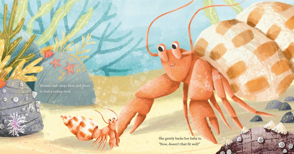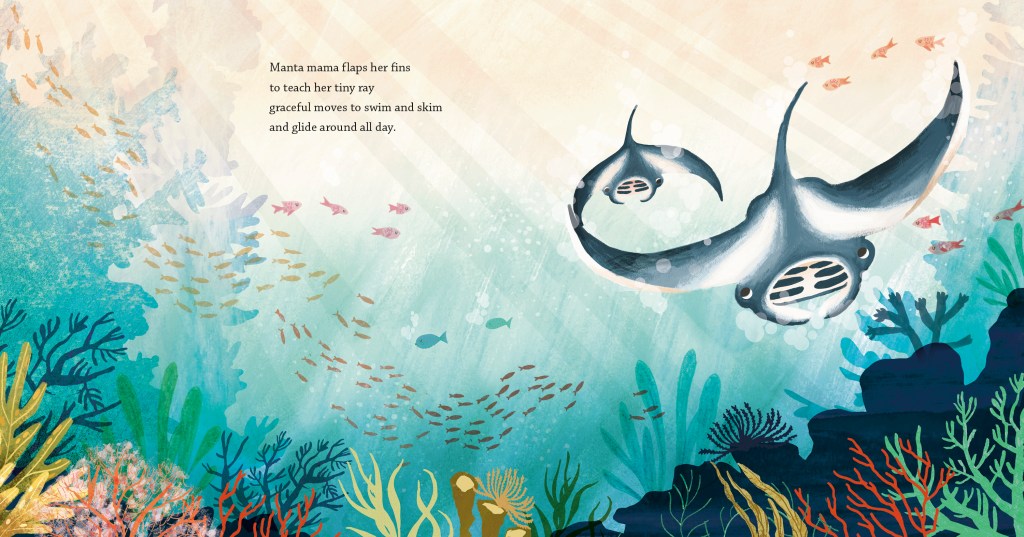 Thanks, Angie. I am fascinated by the ocean, and that interest met up with my desire to write another story in my favorite genre—the “love poem.” My first published book, If Kisses Were Colors (Dial, 2003) compares a mother’s love to the vastness and beauty of the natural world. After that, I wrote a few more about how moms and dads show love to their little ones. But I ran out of humans! So I started musing about different animals. OCEANS OF LOVE takes a dive under the waves in an imaginary journey that ponders how sea dwellers might show maternal love.