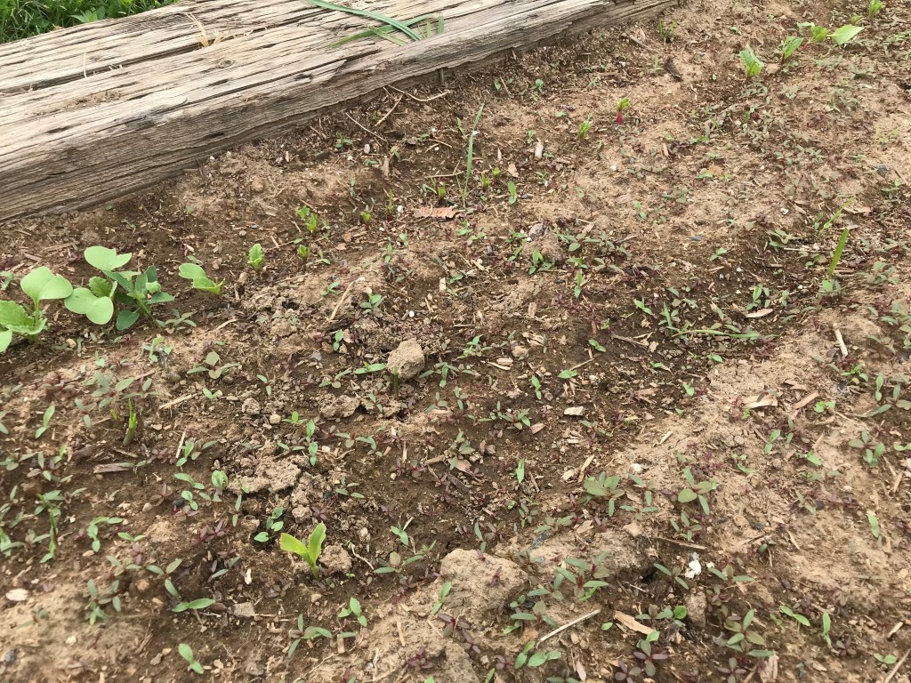Oh. Wait. You can’t see anything but a few stems and missing row of radishes. That’s because we have invaders. Of the rabbit-y sort. The ones who LOVE almost everything in my garden: corn, radishes, green beans, parsley, kale (they really adore kale), and another leafy green similar to chard. All gone.