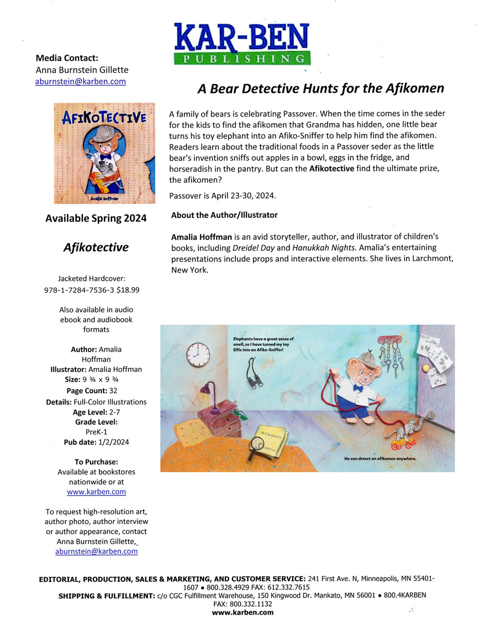 See below for more information about Amalia and her new book. Afikotective is available now (the press release says Spring).