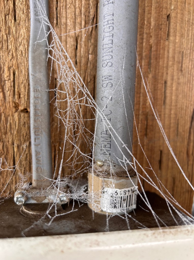Also productive were the tiny pumpkins planted (but also I left some from 2024, so it’s a toss-up which ones actually sprouted) in the sunflower forest bed. I love these, because they vine and grow up. We had them climbing pumpkins, shrubbery, and some of the pine tree (which began as a twig with roots from the Arbor Day Foundation, and is slowly taking over said sunflower forest and patio). I love discovering where these cuties show up.