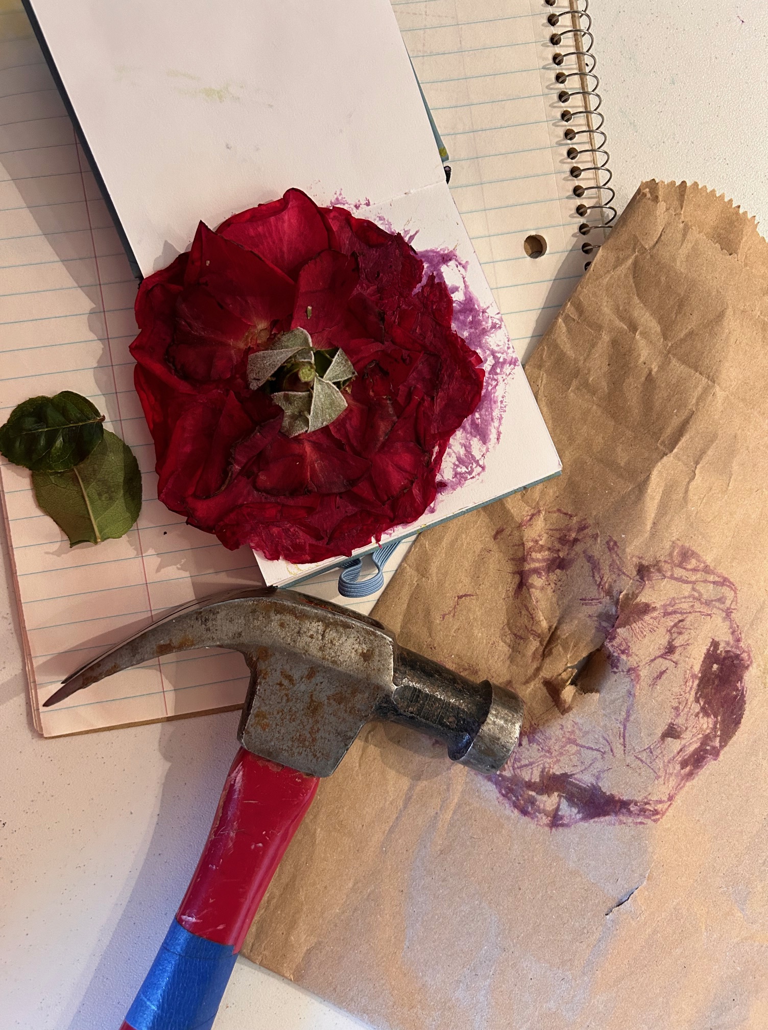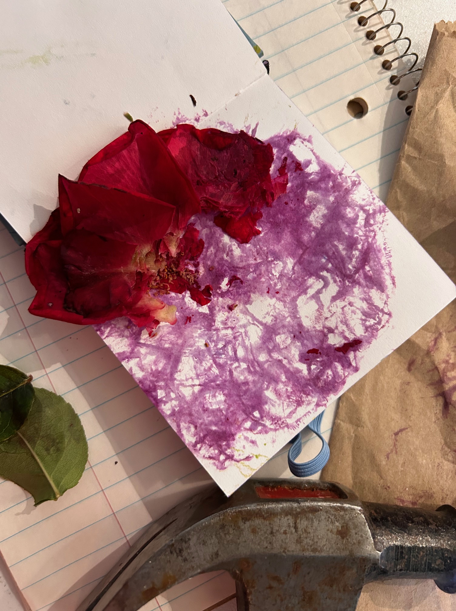 Just look at the surprising color I got from the red rose! I didn’t finish the page in my journal yet, but I was fascinated by the results.