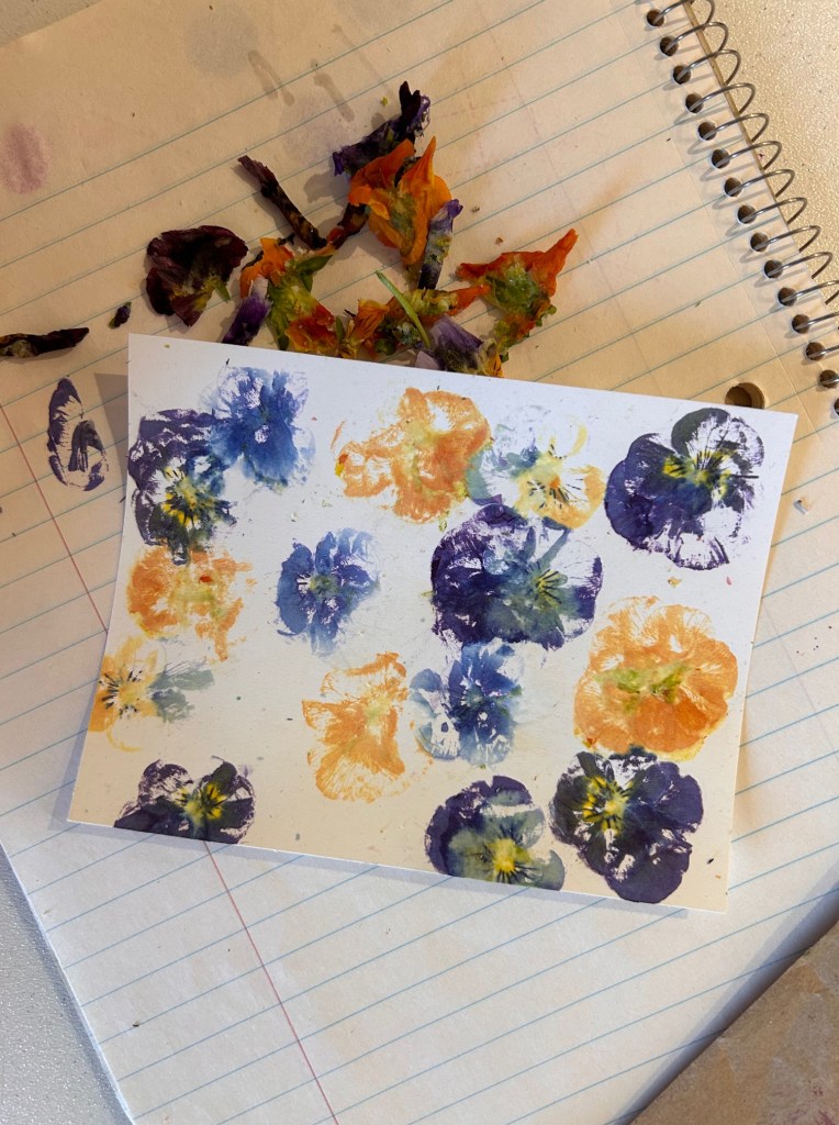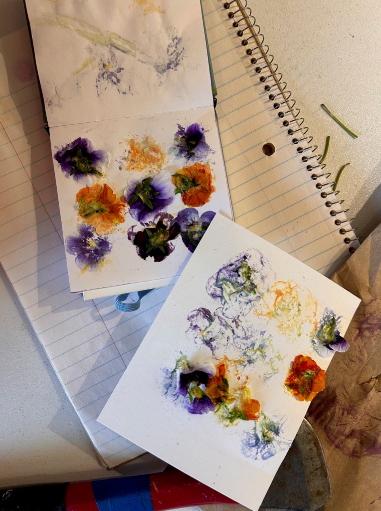Here is what happened in round 2 of flower hammering. I tell you, pansies make great prints! I don’t have much else of substance blooming yet in the garden, but I’ll keep experimenting as the season goes along.