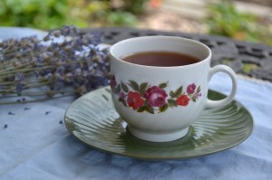 Lavender from my garden and a tea cup we received as a wedding gift (31 years ago) |