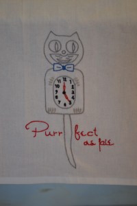 2. The embroidery neatley featured a cat. We love cats and have two terrorist cats of our own.