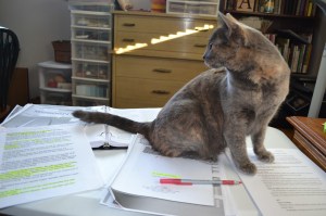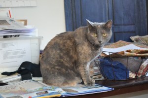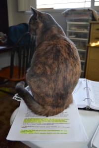 And so went the day. There have been times when my mind was so focused, I didn’t even see or hear the approaching kitty until she leapt in the middle of work. This was especially troublesome when her paws were wet and a touch muddy.