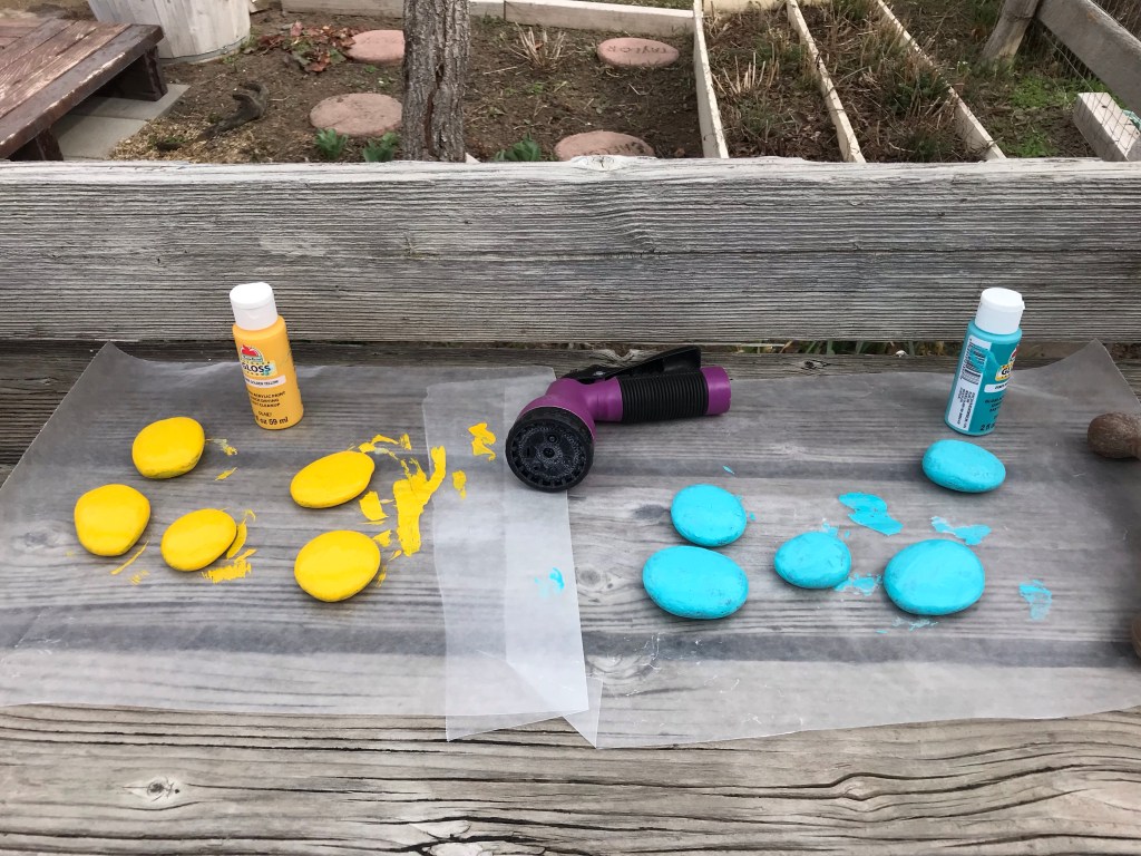 I showed my honey the size and placement of the tic-tac-toe board I was imagining, and off he went to wood burn the game board. Once the top was burned in, play immediately commenced, though the rocks wear not yet ready. My creative grands figured out a plan though, smooth stones versus pointy stones (river rocks and gravel). Perfect!