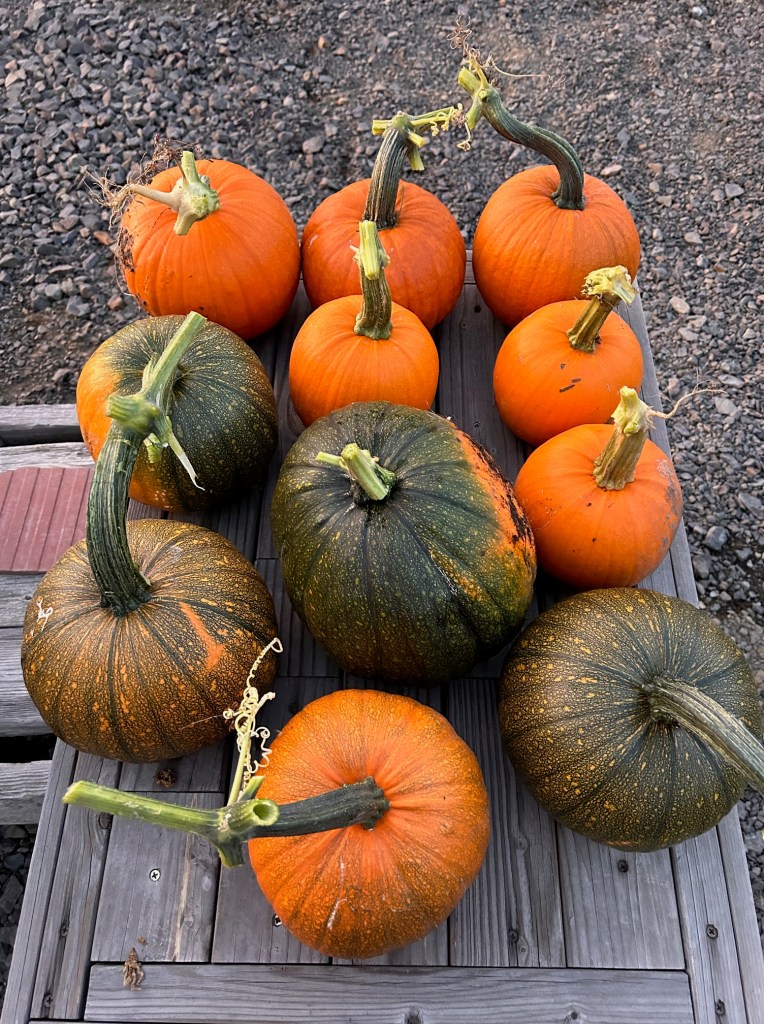 Read to the bottom for the final count. The photo above shows the “big” pumpkins from the garden. In the carving world, they really are medium sized to small, but in my garden, they are the big ones. Also notice the random yellow squash. I harvested 2. I replanted zucchini and yellow squash multiple times. The end results were zucchini: 0. Yellow squash: 2.