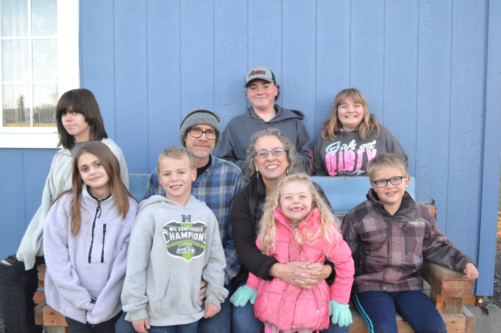 The Bachmeiers and Aucutts, plus Bear and new canine member Timber, crowd into the tree shelter. I mean, look at that! The dogs are facing forward and almost everyone is looking AT the camera. It’s a Christmas miracle.